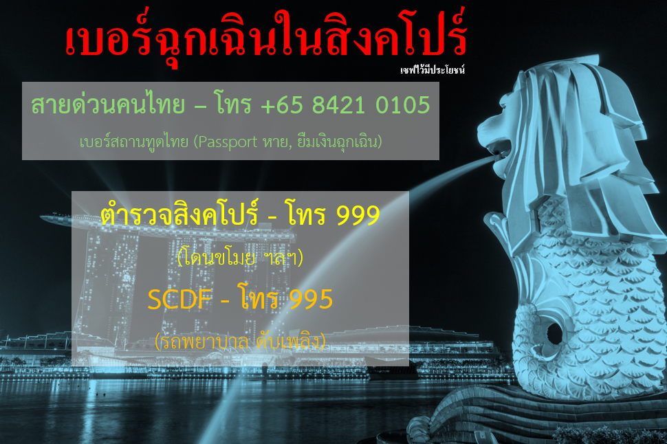 เบอร์สถานทูตไทย (Passport หาย, ยืมเงินฉุกเฉิน) - ตำรวจสิงคโปร์ – โทร 999